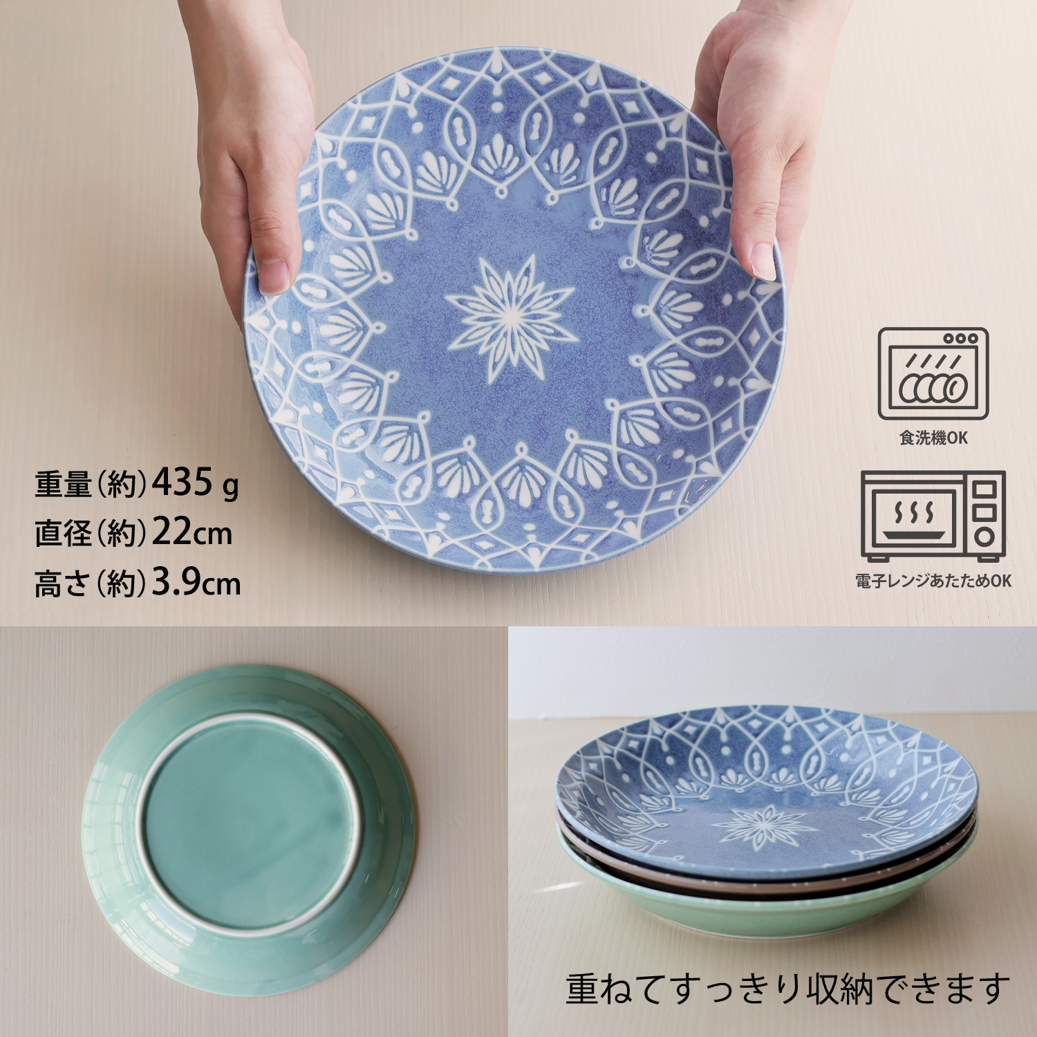 商品サイズ・セット内容/プレート(φ22×h3.9cm)×3