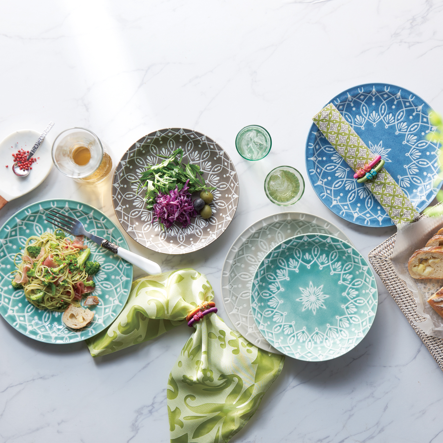 東洋のエキゾチックさに西洋のエッセンスを融合したことで盛り付けるお料理を選ばず、日本の食卓に取り入れやすいようデザインされました。盛り付けたお料理を額縁のように彩り、華やかに魅せる。日々の食事に星のような煌めきを添えるテーブルウエアです。