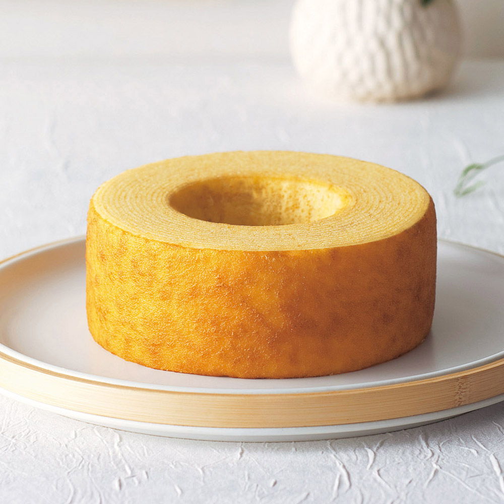 北海道産生クリームを使用した、やさしい味わいのバウムクーヘンです。どなたにも召し上がりやすいよう甘さ控えめに仕上げました。やわらかく焼き上げたこだわりのしっとり感をお楽しみください。