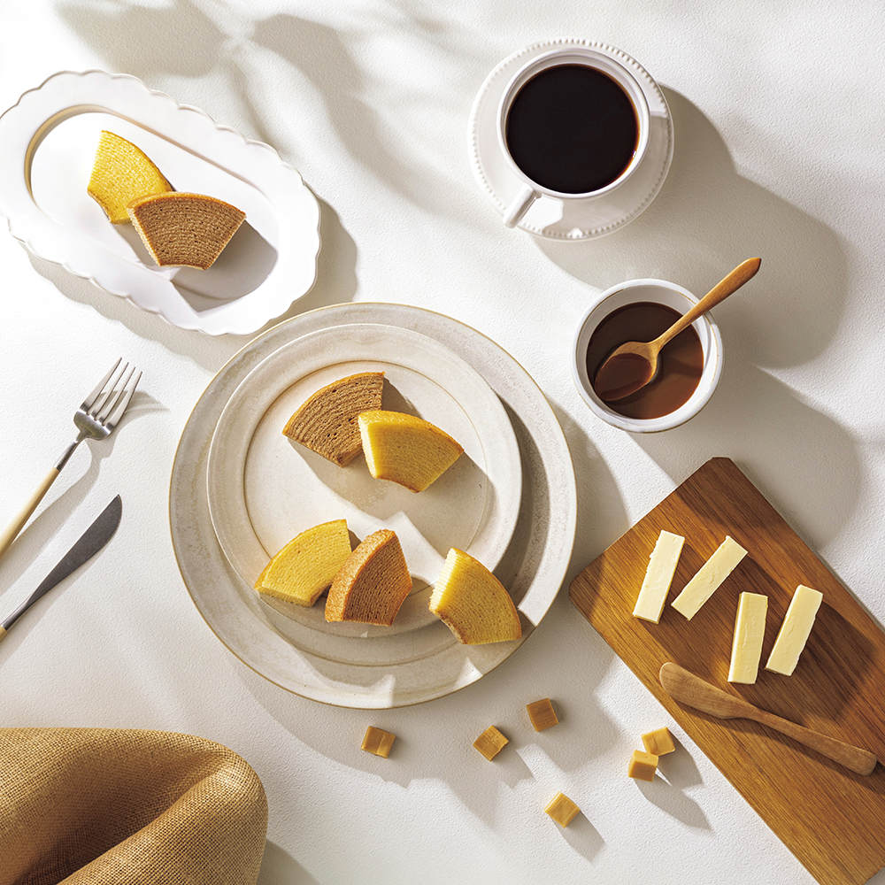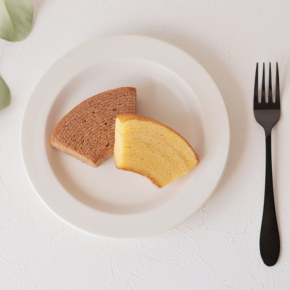 北海道産牛乳の濃厚な旨味が溶け込む優しさあふれるミルク味と、大人を魅了するキャラメルの香りが漂うキャラメル味。2つの味わいが楽しめるカットバウムクーヘンです。ひとつひとつ丁寧に焼き上げた、しっとりふわふわ食感をお楽しみください。