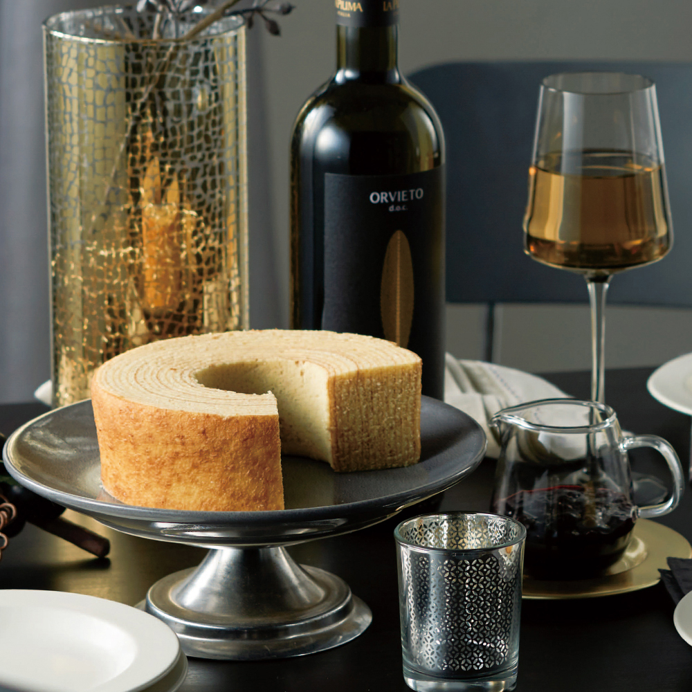 北海道産生クリームを使用した、やさしい味わいのバウムクーヘンです。やわらかく焼き上げたこだわりのしっとり感をお楽しみください。