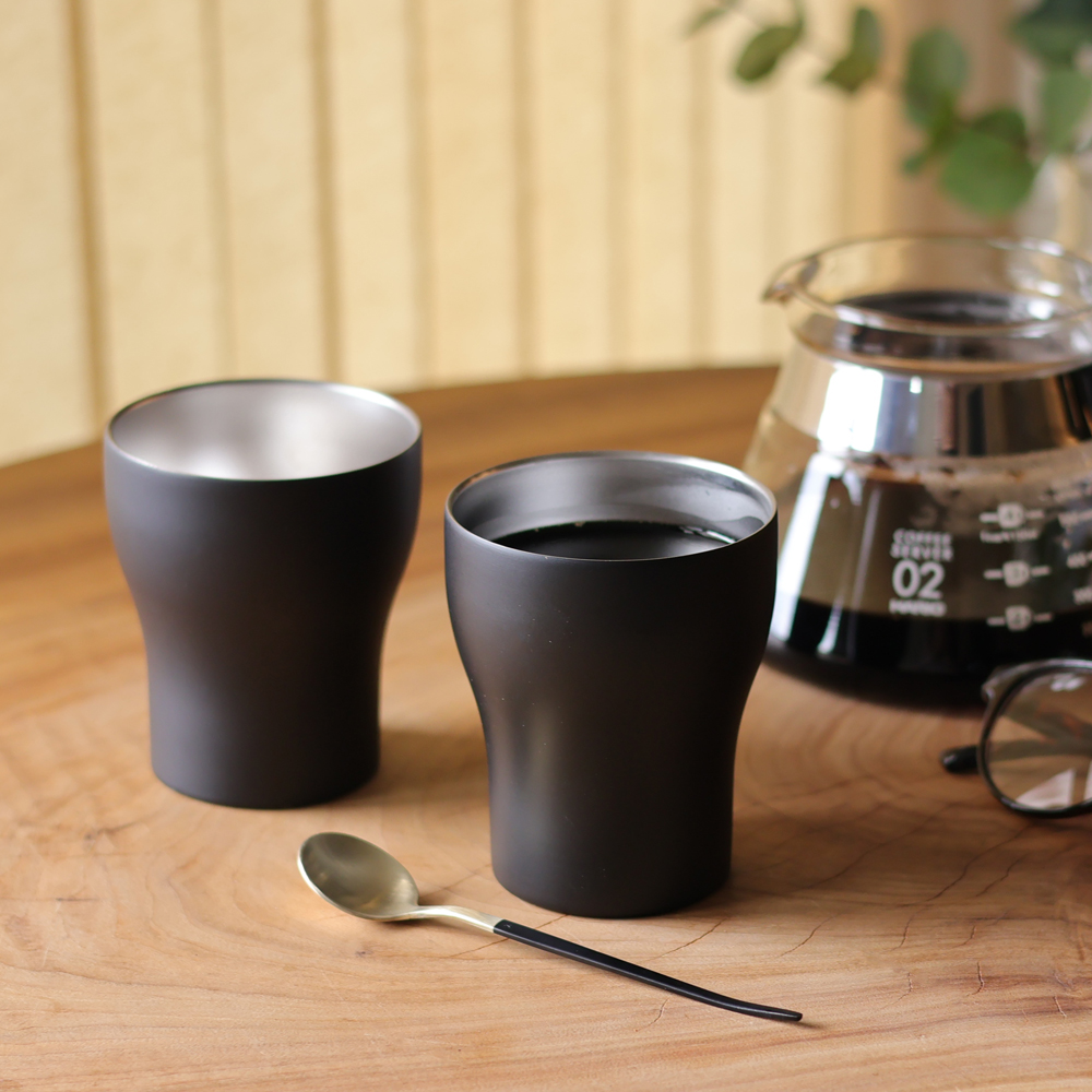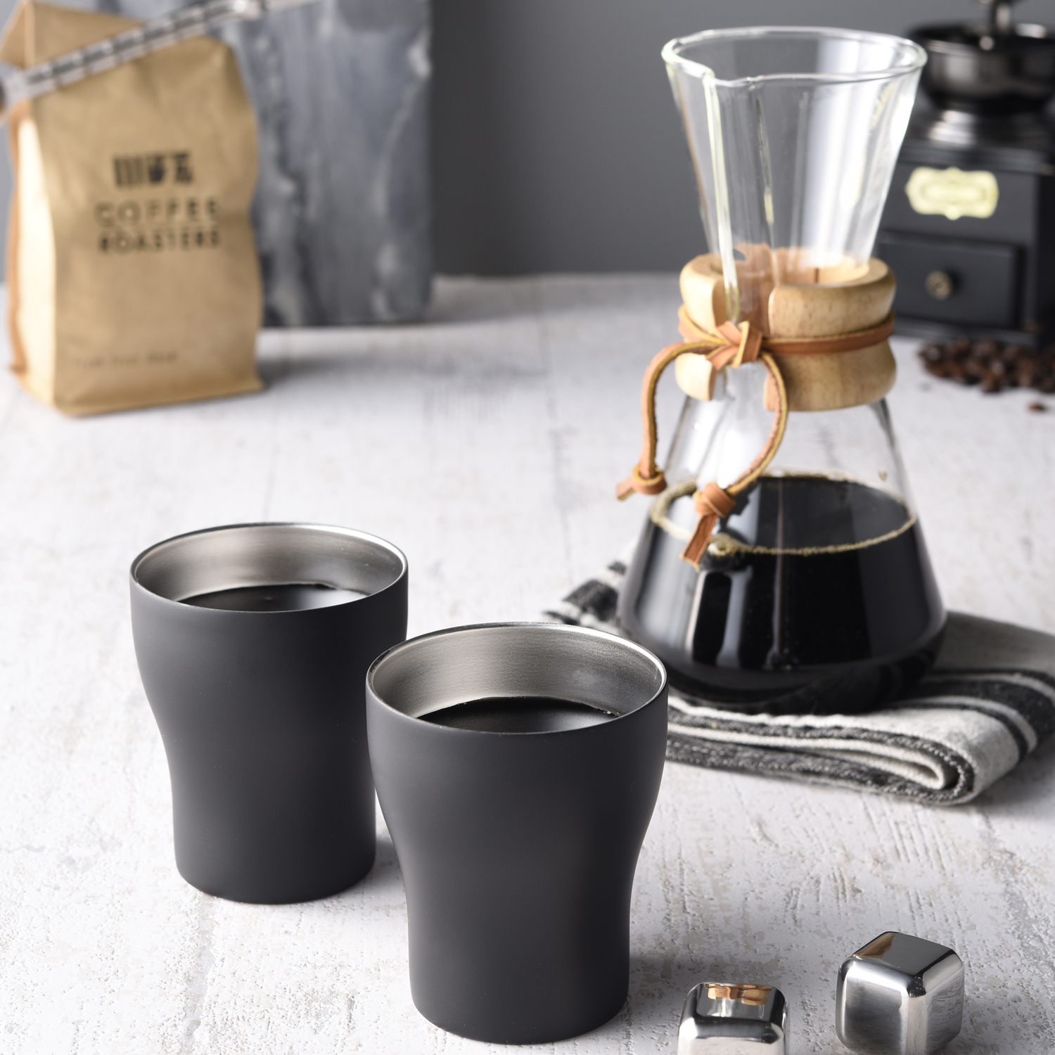 保温・保冷力に優れた二重構造ステンレスカップと、冷凍庫で冷やして氷の代わりとして使えるフローズンメタルのセット。氷のように溶けて飲み物を薄めることがないのでワインやビール、ジュースなどにもおすすめです。