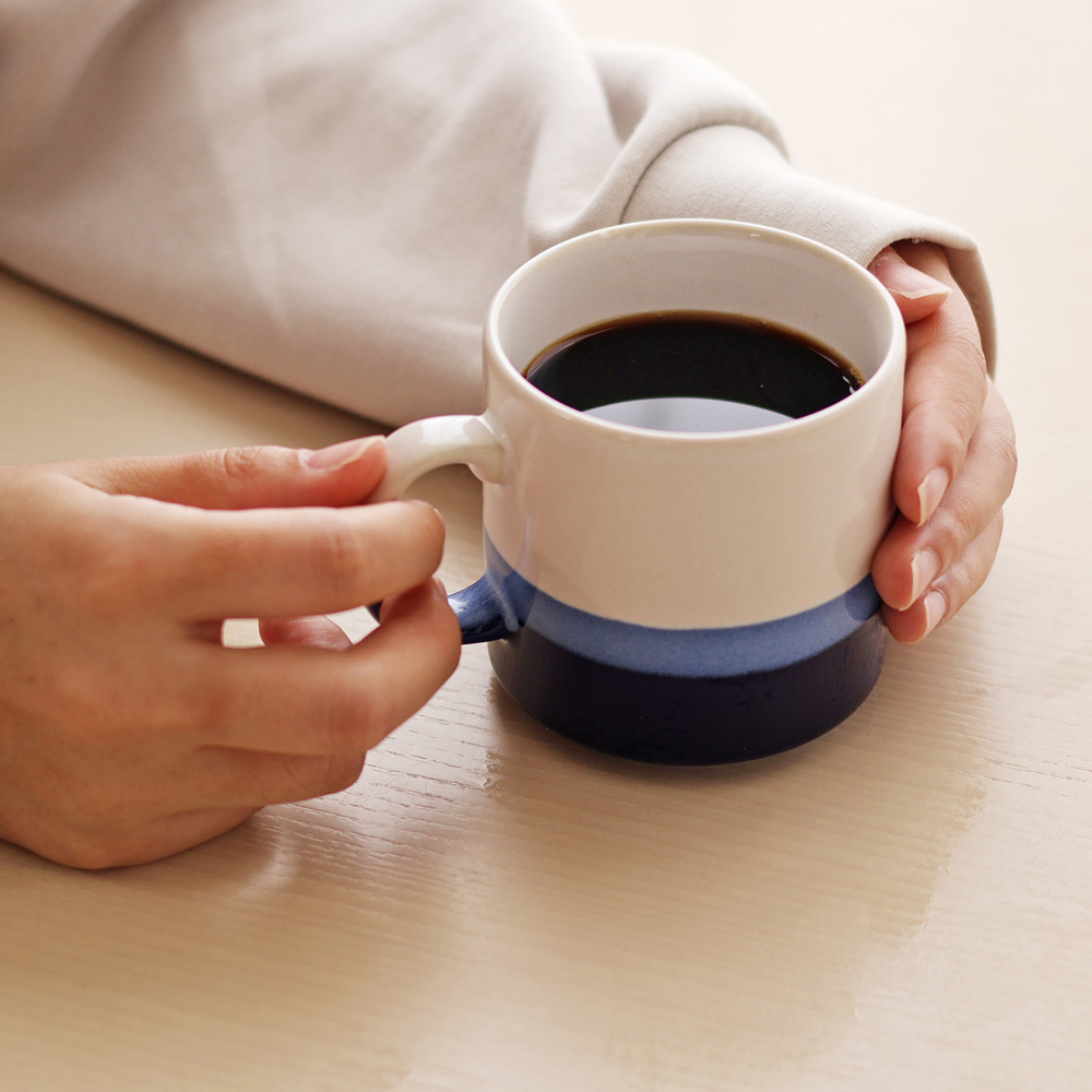 味わいのあるデニムの色味を再現したマグカップに、ボタンをかたどったナチュラルな雰囲気の木の蓋をセットにしました。小物入れとしても使えるアンティークな雰囲気の木箱付です。