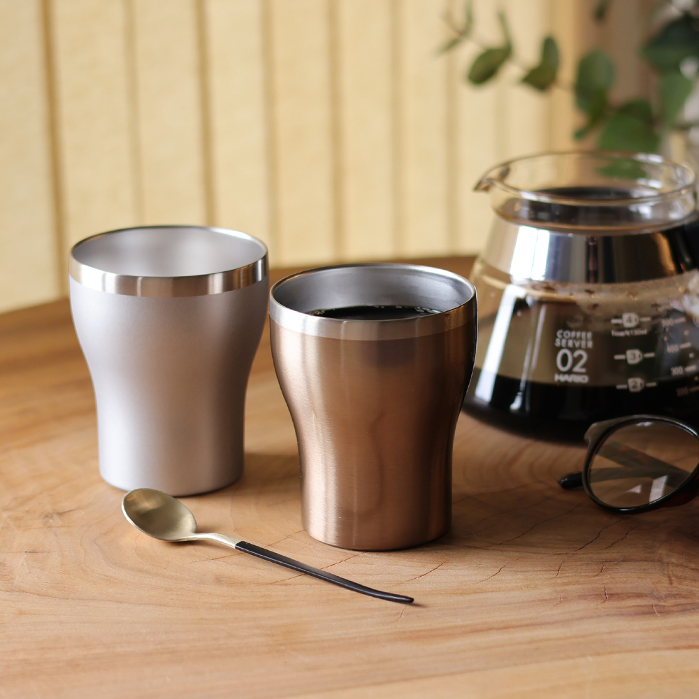 二重構造で温かさや冷たさが長持ちする、スタイリッシュなステンレスカップです。
