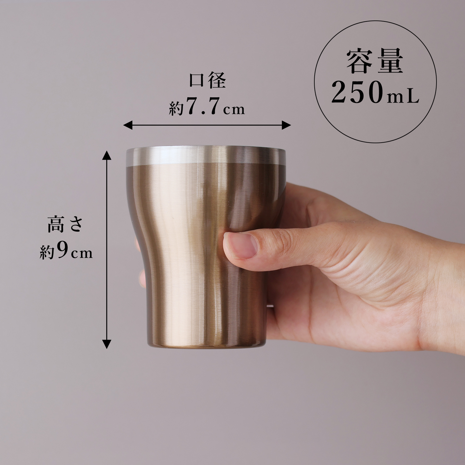 商品サイズ・セット内容/二重構造カップ(φ7.7×h9cm・容量250ml)×2