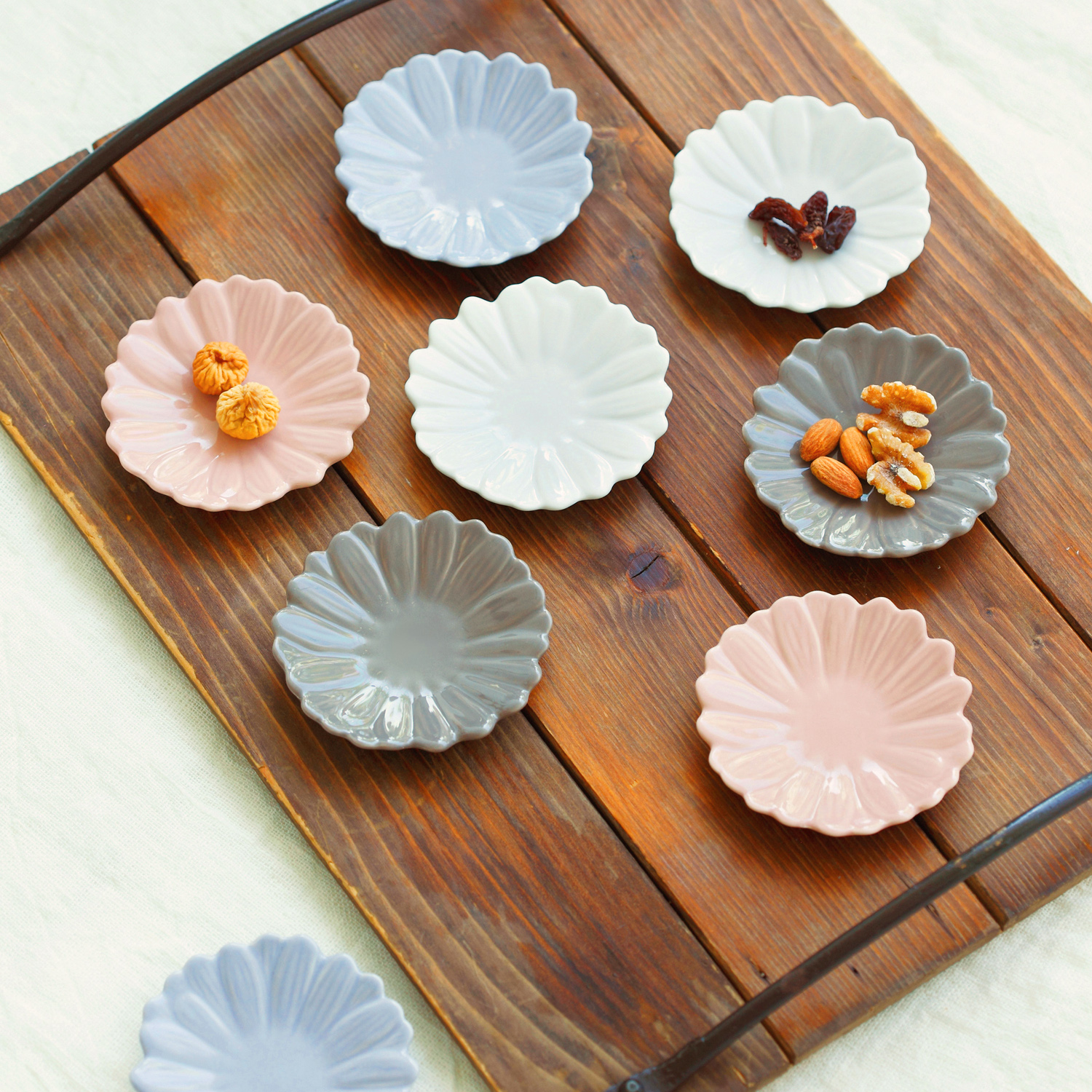 色とりどりの愛らしいお花のかたちの小皿たち。