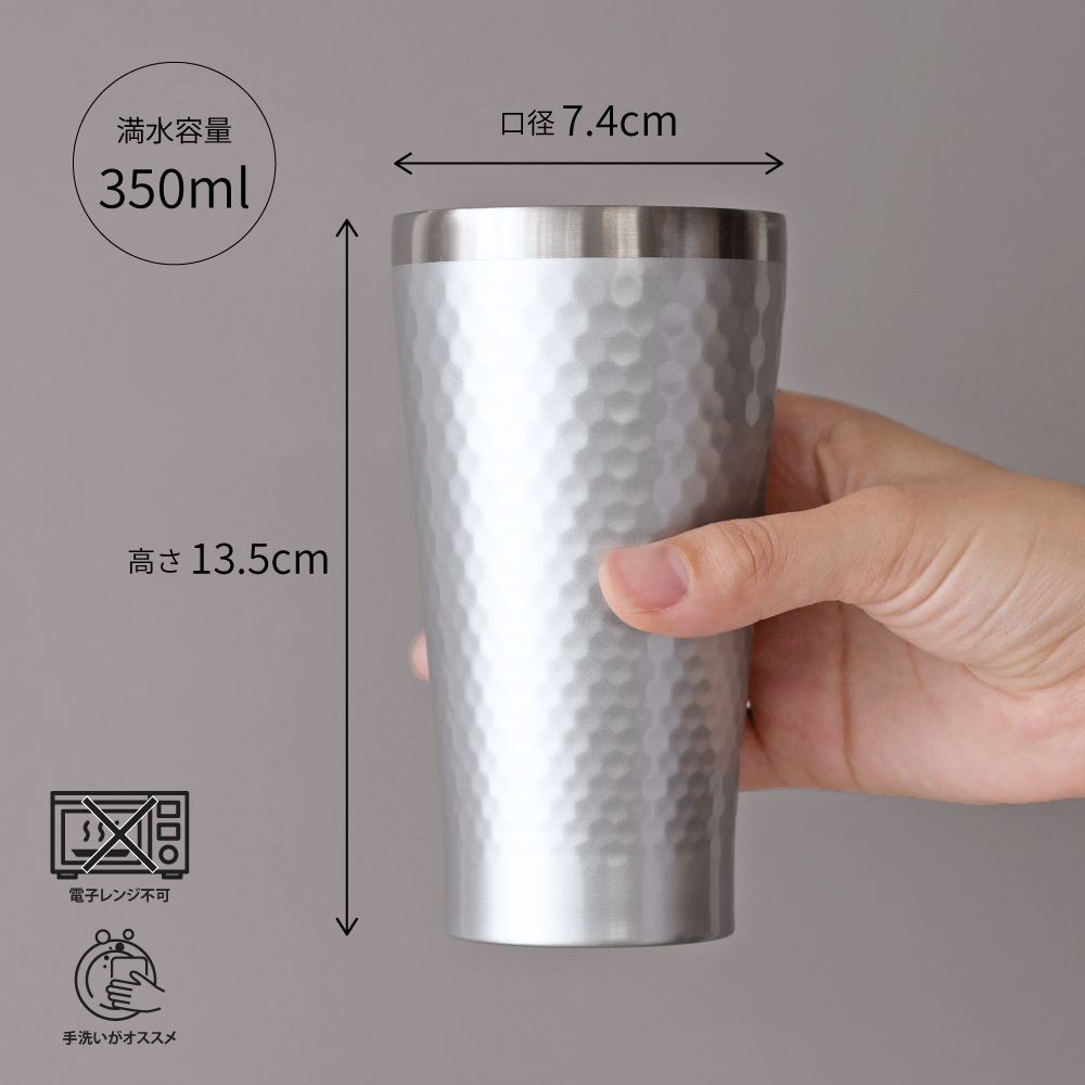 商品サイズ・セット内容/真空二重構造タンブラー(φ7.4×h13.5cm・容量350ml)×2