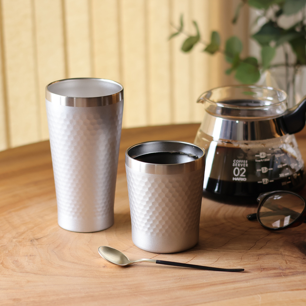 氷を入れてたくさん飲みたいコールドドリンク、じっくりと少しずつ味わいたいホットドリンク・・・好みに合わせて選べる2つのサイズの真空断熱ステンレスタンブラーをセットにしました。