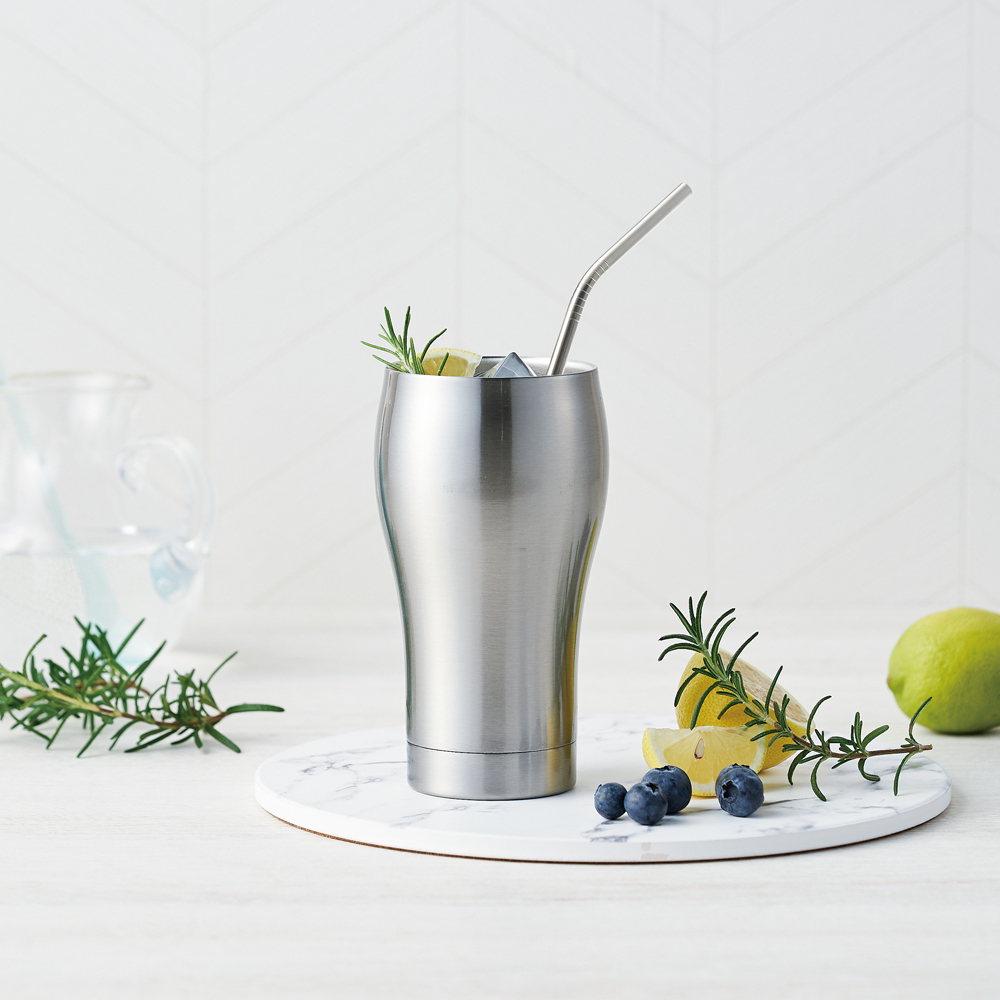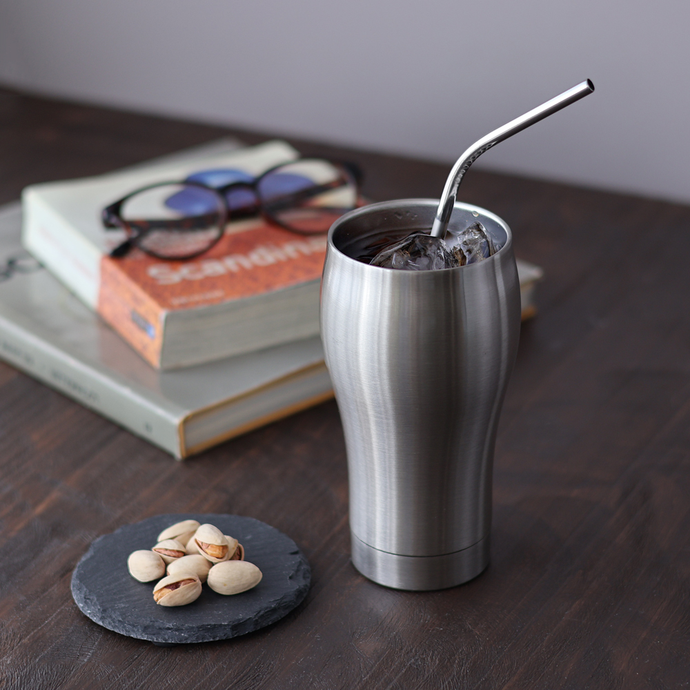 キンと冷えたドリンクをより冷たい口あたりで味わえるステンレスストロー付きの真空二重構造タンブラー。ステンレスストローは紙やプラスチックのストローとは違い、繰り返し使うことができる今注目のサステナブルアイテムです。