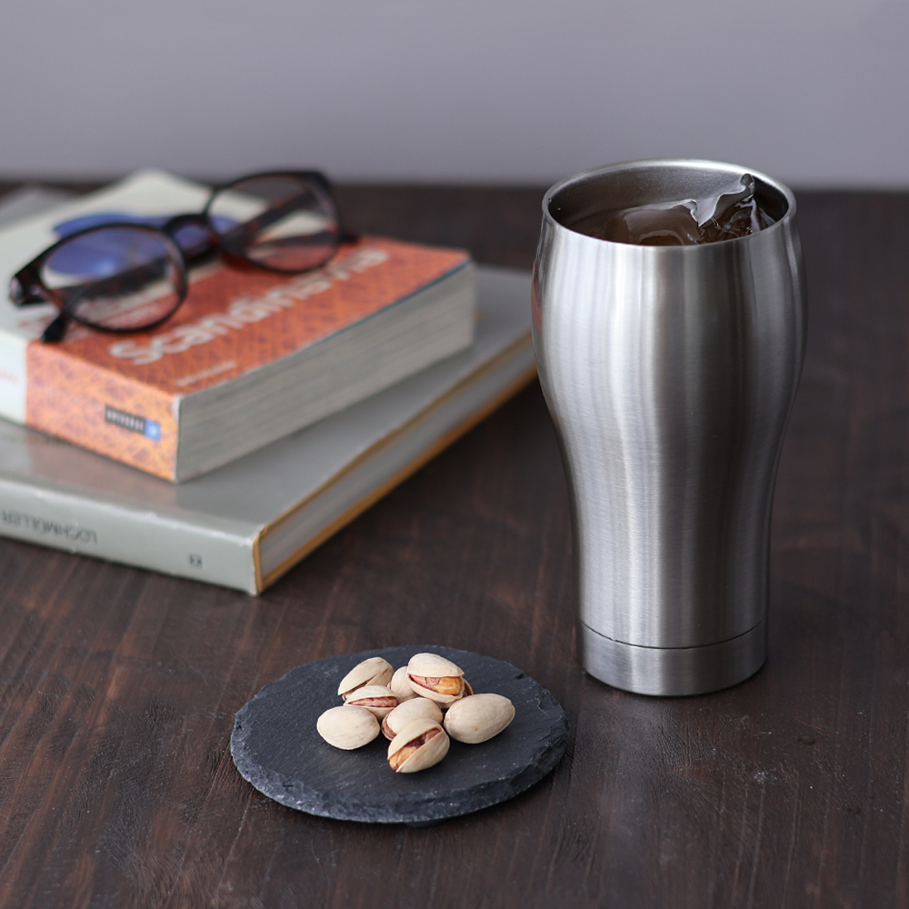 保温・保冷性に優れた真空二重構造のタンブラー。タンブラーに注いだビールが最後の一口まで冷たい!また熱々のコーヒーを淹れてもタンブラー自体は熱くなりません。美味しさ、飲みやすさを追及したタンブラーセットです。