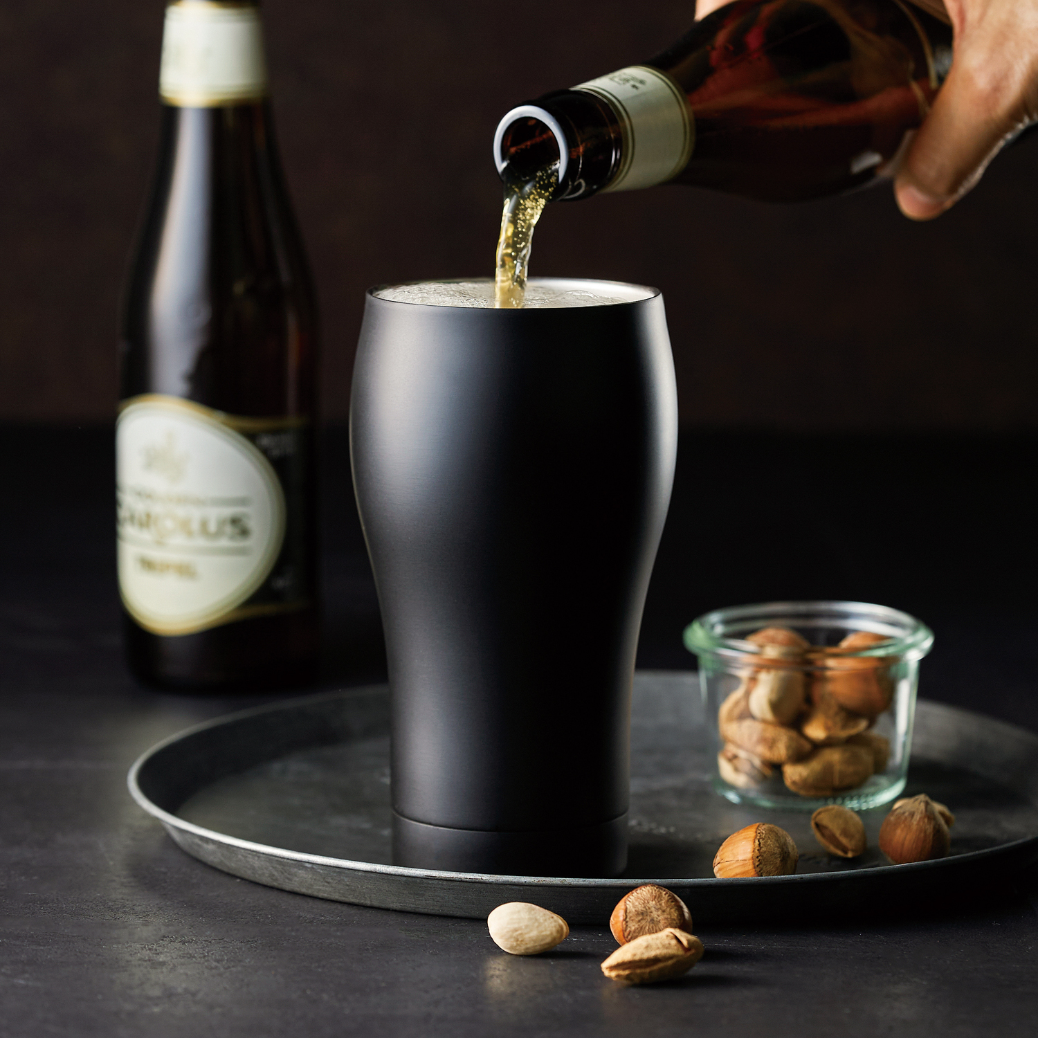保温・保冷性に優れた真空二重構造のタンブラー。タンブラーに注いだビールが最後の一口まで冷たい!また熱々のコーヒーを淹れてもタンブラー自体は熱くなりません。美味しさ、飲みやすさを追及したタンブラーセットです。