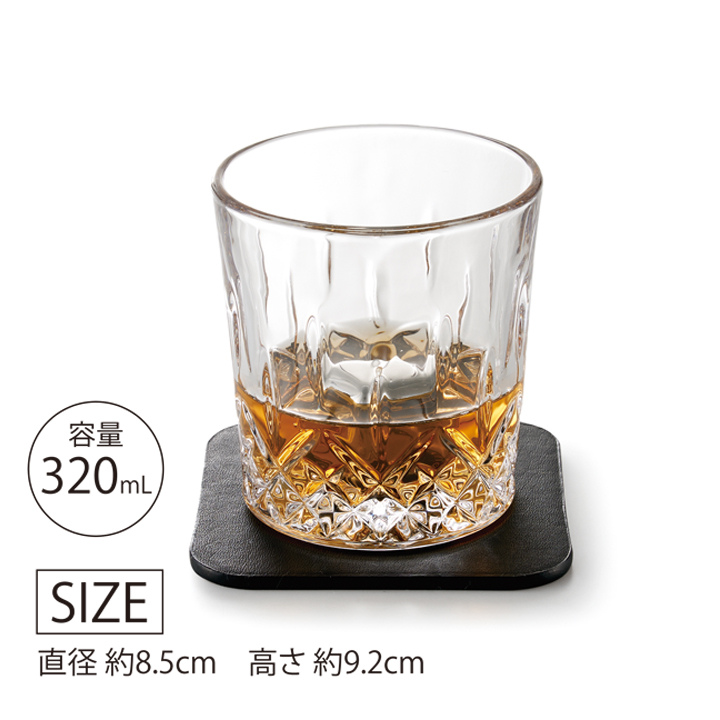 商品サイズ・セット内容/グラス(φ8.5×h9.2cm・容量320ml)×2 フローズンメタル(角)(2.5×2.5×2.5cm)×2 コースター(10.1×10.1cm)×2