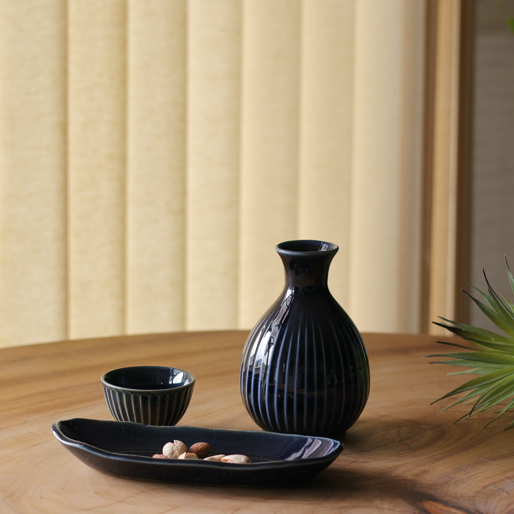 夜空を映しこんだような深い藍色の優美な酒器がもたらす心地よさが美味しい酒を演出します。
