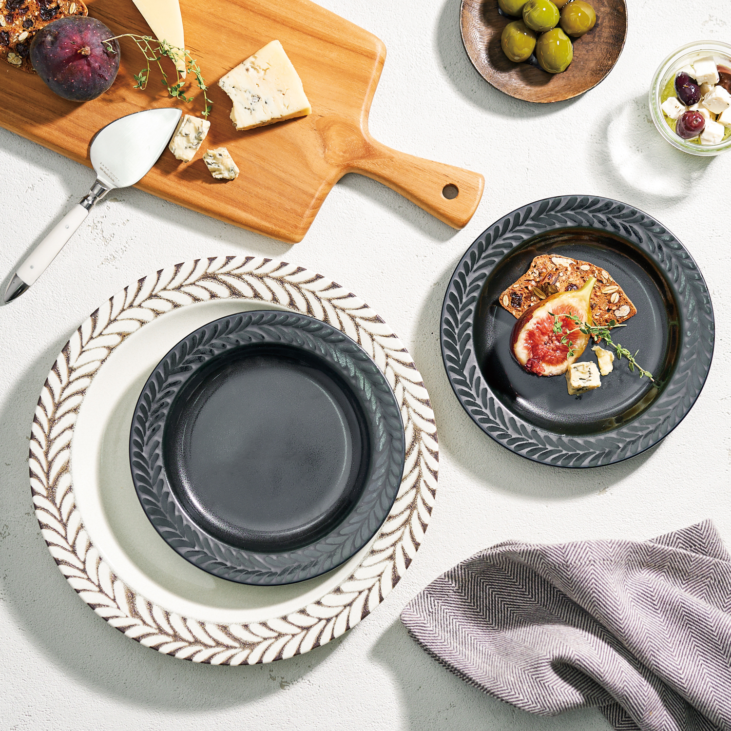 「栄光」や「勝利」を花言葉に持つ月桂樹。その葉を冠のようにリムにあしらったプレートが、盛り付けられた料理をドラマチックに引き立てます。