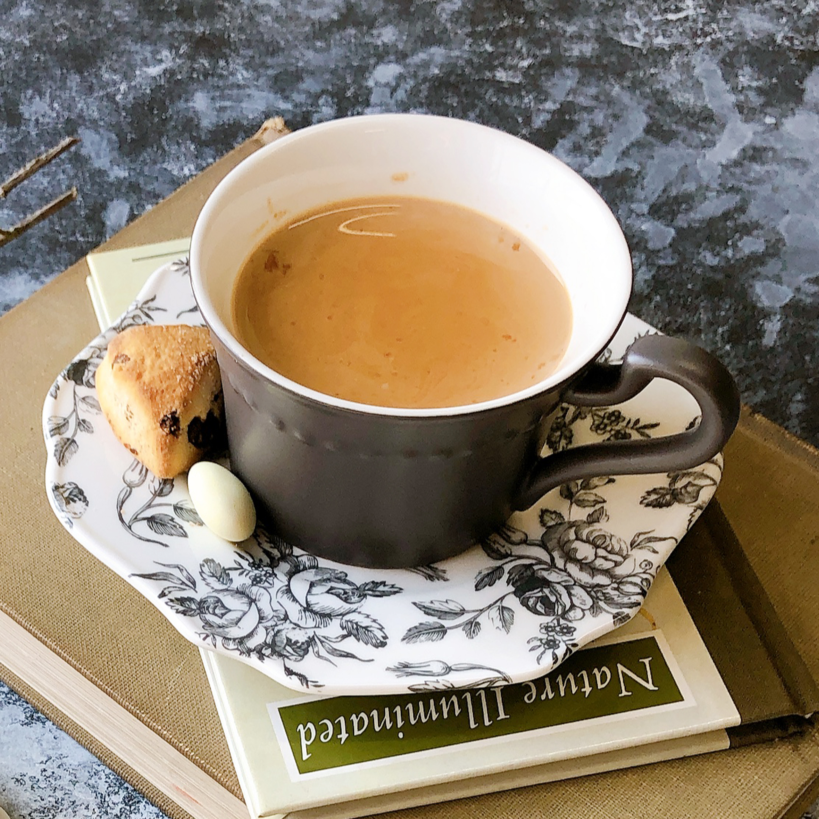 シックで大人っぽいダークカラーのカップにシノワズリのソーサーをあわせた、優雅でロマンチックな雰囲気のコーヒーカップセットです。