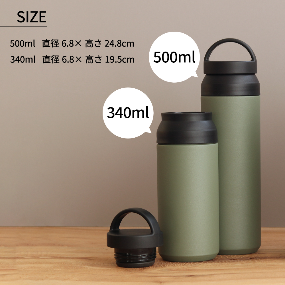 商品サイズ・セット内容/真空二重構造ボトル(φ6.8×h19.5cm・容量340ml)×1